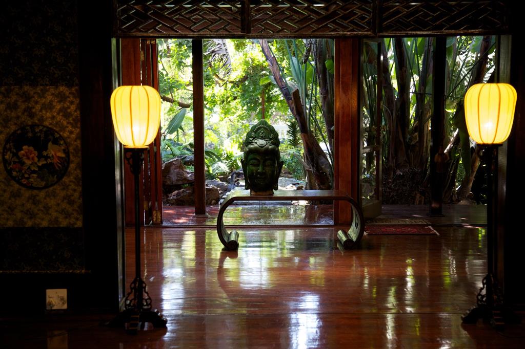 This Balinese inspired home, affectionately termed The Hideaway, offers 7 en-suite bedrooms. Spacious, dining/relaxation area. Lush gardens. Serene pool. 3 staff rooms. 4 garages and additional on-site parking for 7 vehicles. Formally utilized as a SPA, however has not been zoned for business.