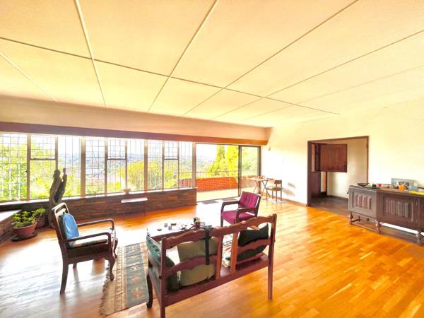 The upper level boasts an expansive living and dining area with sweeping views of Pretoria, perfect for entertaining or relaxing with family. The spacious kitchen, featuring a separate laundry room, retains its original charm while offering ample opportunity for modern upgrades. Beneath the current novilon flooring lies well-preserved wooden floors, ready to be restored to their former glory.