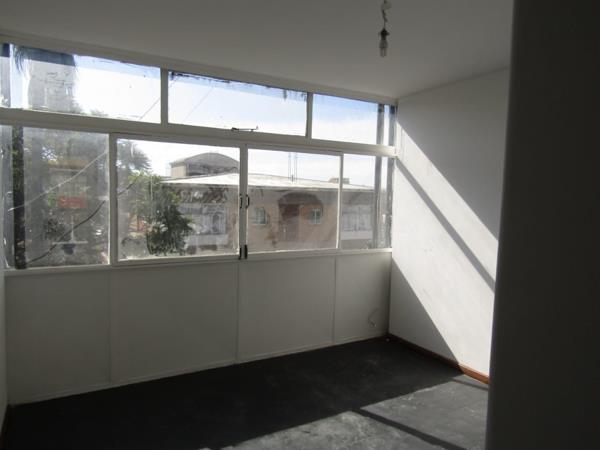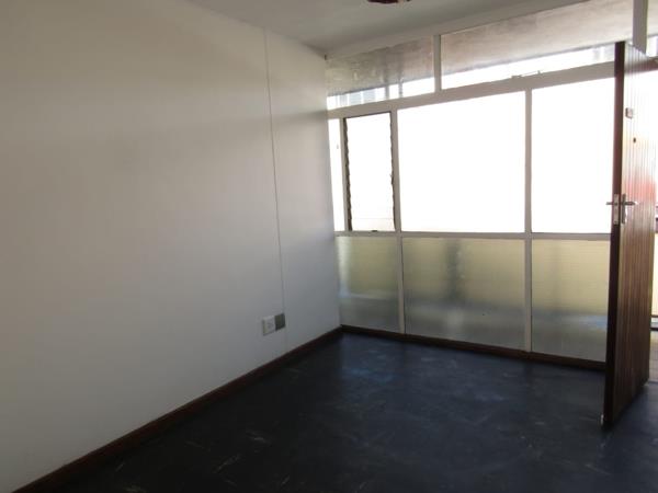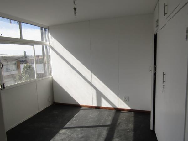 One well-sized bedroom with built-in cupboards. One bathroom with basin, and toilet.