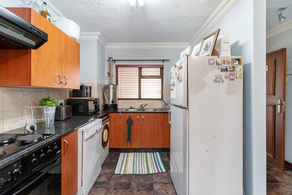 Being one of the bigger two-bedroom apartments available in the complex, this ground floor apartment is extremely neat with spacious bedrooms and the living area and kitchen are open plan. There are two bathrooms, one full bathroom and one bathroom with only a shower. You can also walk out on a small private patio. The apartment has two allocated parking bays. The complex has a pool and braai facilities.