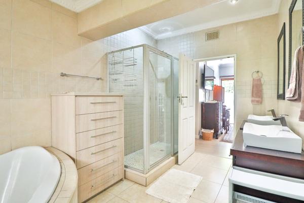 The kitchen is superb, modern and fully renovated with space for double door fridge and all additional appliances. The 5 plate gas stove is a lovely enhancement. A breakfast nook, plenty of cupboard space together with panty closet and a back door leading out to a very neat and spacious courtyard with lovely plants and a washing line. The garden area has sprinklers
