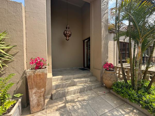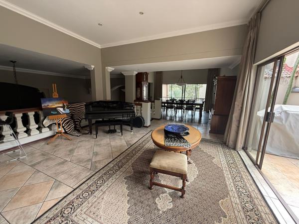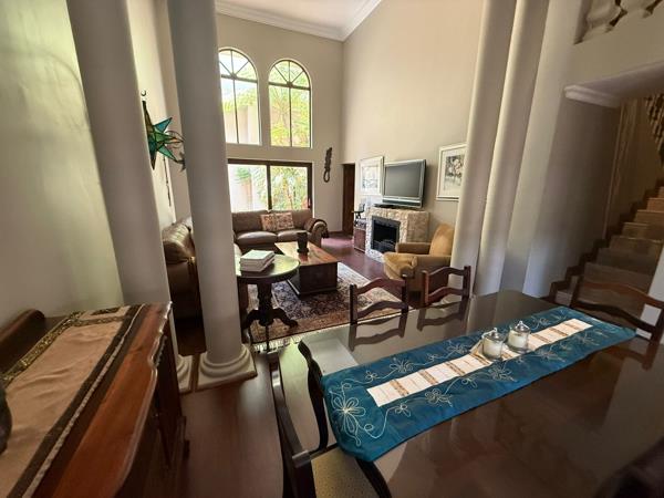 The home features four spacious bedrooms, each with its own bathroom, ensuring comfort and privacy for the entire family. A well-appointed domestic quarter with en-suite facilities adds further convenience. Designed with modern living in mind, the property includes a double garage, solar power, and a meticulously maintained garden that remains lush and inviting throughout the year.