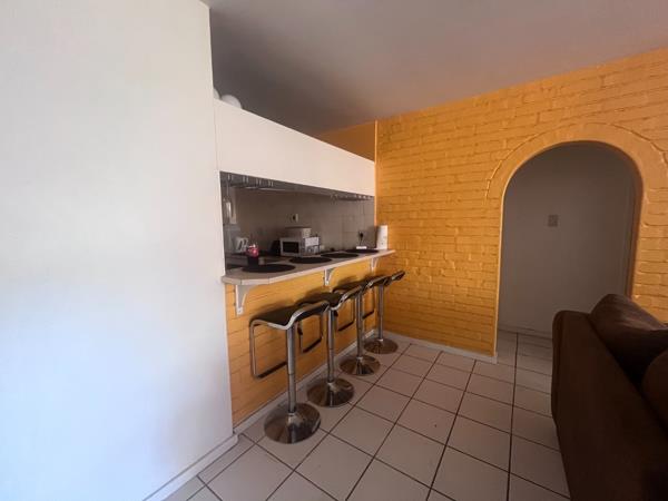 This charming two-bedroom flat is designed for both comfort and style, featuring built-in cupboards that maximize storage space while maintaining a sleek, modern aesthetic. Each room is adorned with beautifully painted walls in vibrant colors, creating a lively atmosphere that enhances the overall appeal. The open-plan kitchen is both functional and inviting, equipped with contemporary cabinetry and appliances, perfect for culinary enthusiasts. A cozy living area complements the bedrooms, furnished with tasteful pieces that make the space feel homey yet sophisticated.