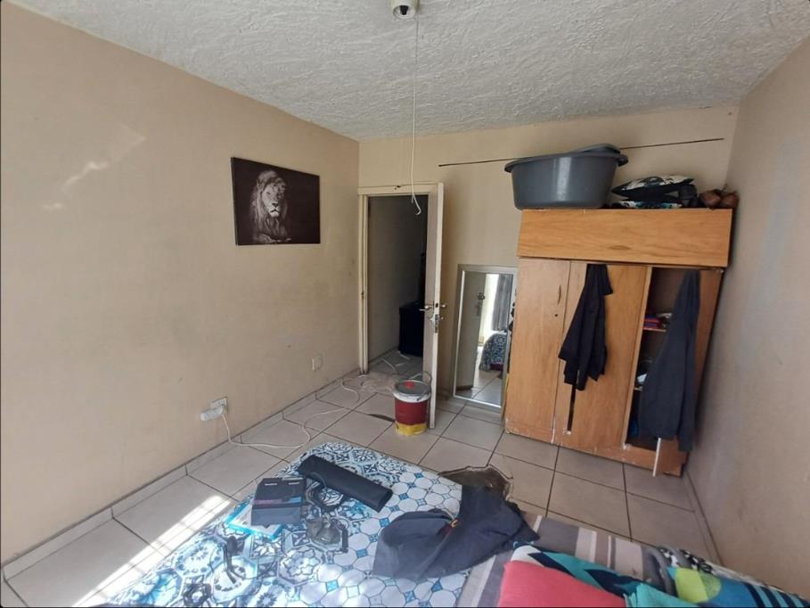 The dining room has been converted into a bedroom with fully tiled floors and no built-in cupboards.