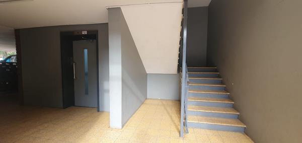 This 70 sqm apartment offers a practical living solution in the vibrant metropolitan area of Sunnyside, Pretoria. The multi-story brick building, set amidst mature trees, presents a durable exterior with a gated entrance, suggesting a secure environment for residents.