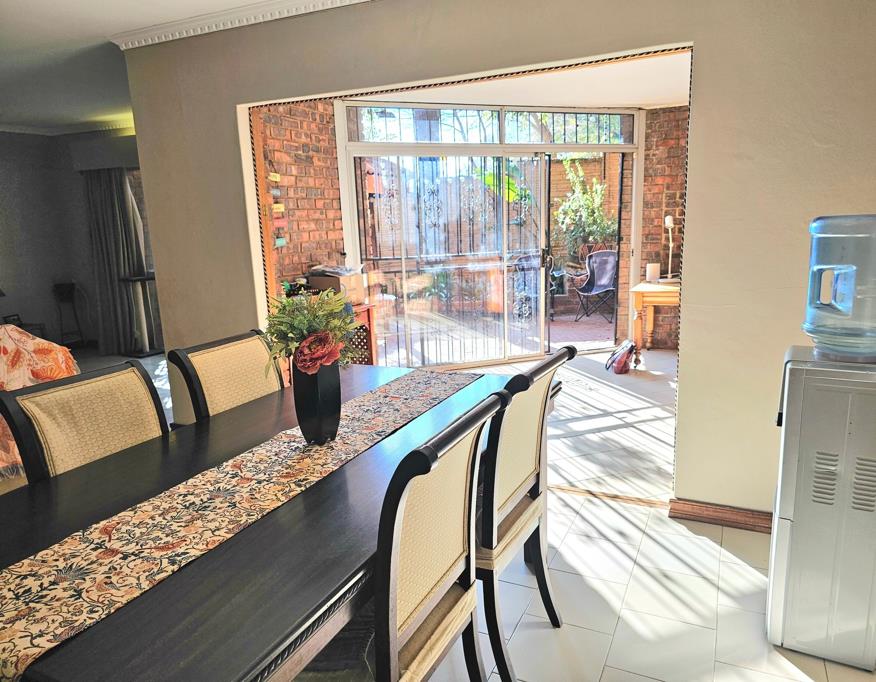 This is a lovely double story townhouse, exceptionally well positioned and situated in a small, cozy complex, stone throw from Menlyn Maine business hub and shopping Centre and Waterkloof Country Club Golf course.
