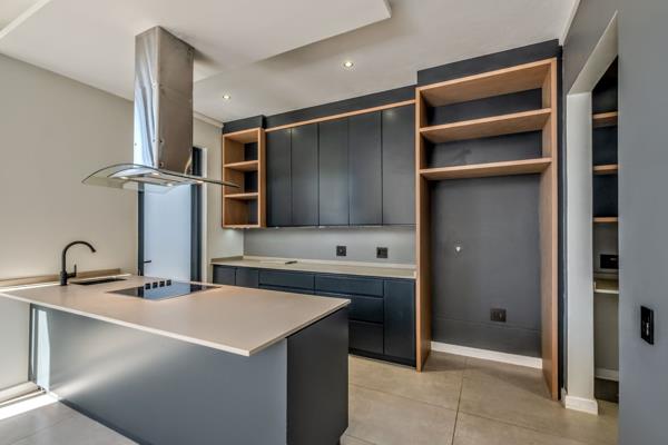 Trendy modern kitchen layout with top quality finishes, a stunning kitchen island with an under counter oven, hob with and extractor fan rounds off this lovely kitchen area. The scullery and laundry room adjacent to the kitchen is hidden out of sight and provides direct entry into the larger than usual double garage with tiled floors. This practical size of the double garage allows for storage space and sports built-in cupboards.