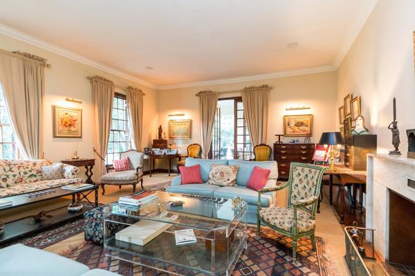 The brightly hued family room (also with a fireplace) is a visual delight and the serene dining room, with beautiful floor to ceiling sash windows, encourages relaxed and blissful mealtimes.