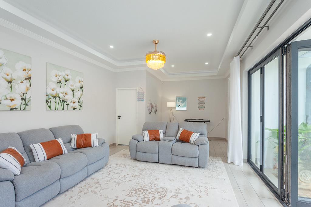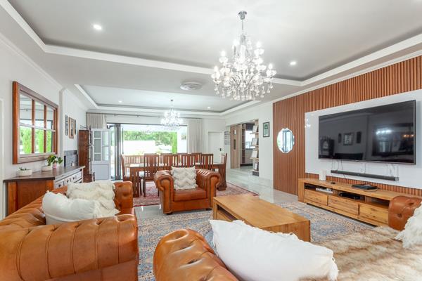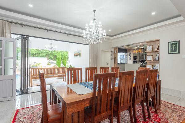 Folding stacking doors provide easy access to 2 covered patios. One overlooks the sparkling pool, while the other has an extensive built-in braai area that includes an authentic pizza oven.