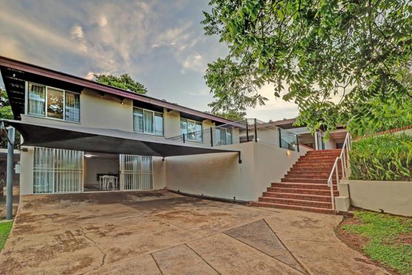 This spacious house nestles against a hill overlooking the Waterkloof valley and Country Club golf course eastwards towards Lynnwood Road. What a sight to follow the lights at night! It has a granny flat/home office/gym with bathroom as first level.
