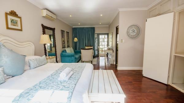 Welcome to our fully furnished guesthouse in scenic Waterkloof Ridge, boasting breathtaking views. Situated on a large property, it boasts a swimming pool and separate staff accommodation.