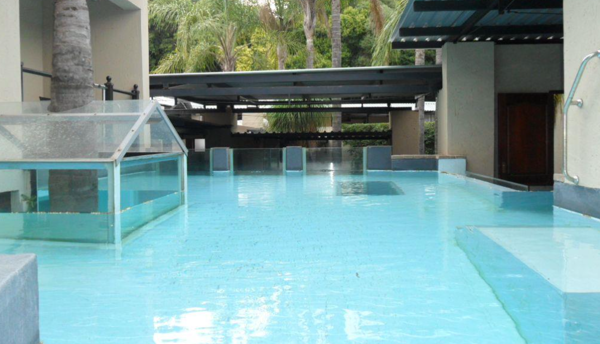 Glass-Enclosed Rooftop Swimming Pool with panoramic views the perfect place to unwind and enjoy the stunning scenery