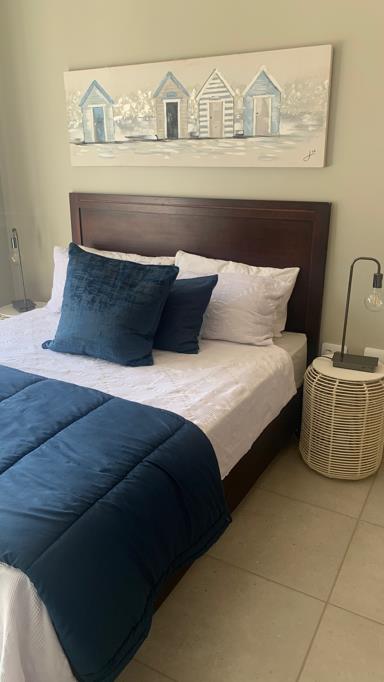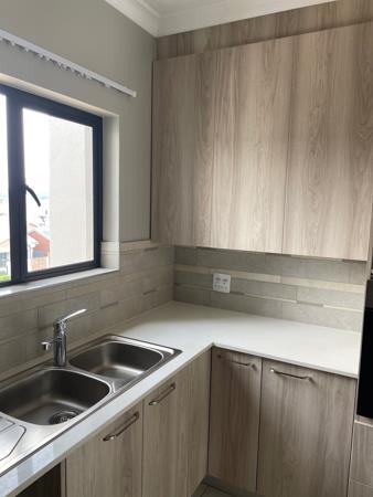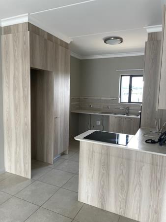 2 Bedrooms with built-in cupboards, 1 bathroom (with walk-in shower, extractor fan, basin and toilet). Upmarket kitchen with soft-close drawers, Bosch oven and stove and space for 2 automatic appliances (i.e washing machine and fridge). Open-plan living area opening up to a sunny, holiday-like balcony. The apartment comes with 1 carport parking.