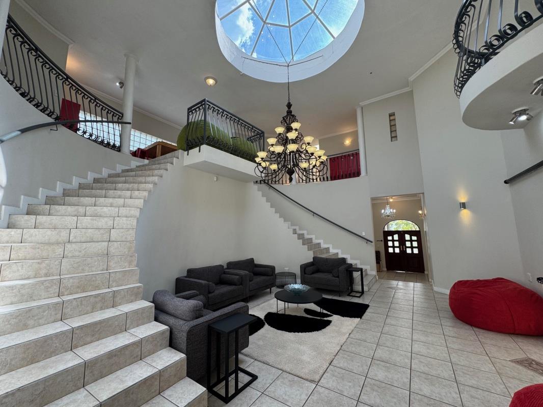 A spectacular open plan unfolds a foyer with double volume and double staircase. Close by, a cozy corner with sliding doors leading to garden and pool and upstairs the bedroom wings.