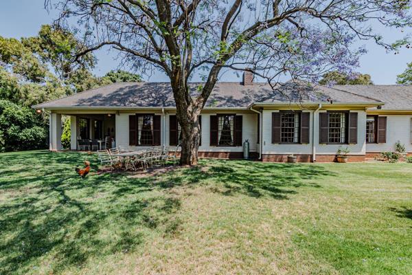 A single level 4-bedroom, 3-bathroom masterpiece with views from every window of the established garden with mature shade trees and endless rolling lawns. This beautiful north-facing house boasts high ceilings, 4 spacious reception areas with unique woodwork and antique fireplaces. Comprising of a spacious gas equipped kitchen (including a breakfast nook) with loads of cabinet space and work surfaces it is ideal for the serious cook.