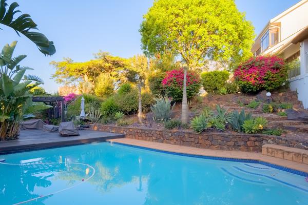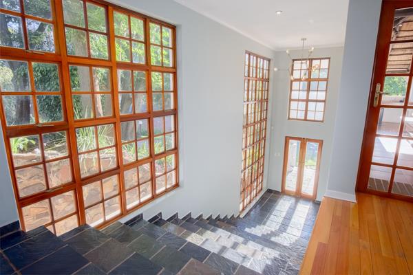 The beautifully established garden comes with rolling lawns and a lovely range of indigenous trees and shrubs.