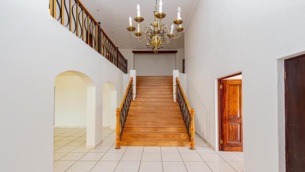 Beyond the solid swing front door lies a wooden sweeping staircase to the upper level of the property. At the ground floor is vast open-plan living areas that instantly capture the magnitude of this extraordinary home. The residence offers an extraordinary huge Lounge and Dining room that can fit a 12-seater table with a guest bathroom all set in an open plan leading out to a covered patio with a built-in braai and canvas curtains that can be closed for winter time gatherings next to the swimming pool area. The Kitchen is also impressive as it is a designers kitchen with light brown wooden cupboards and dark granite counter tops, an eye level oven, electrical hob, extractor fan, breakfast nook and a massive walk-in pantry. The Scullery is also very spacious with an additional walk-in pantry. On the other side of the staircase is also a massive Family room or Television room bragging with a walk-in closet and walk-in safe.