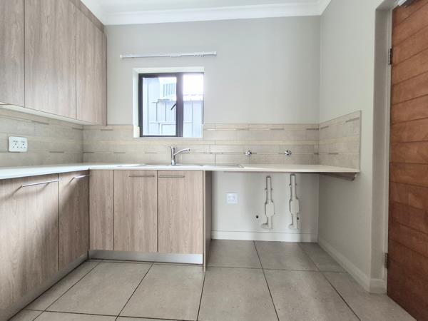 Kitchen: Built-in stove & oven, ample cupboards, space for fridge, washing machine, and dishwasher.