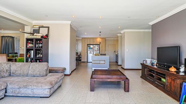 The home includes two lounges, a dining room, a well-appointed study, a dedicated braai and entertainment room, and a practical domestic and utility area. Large windows and an inviting flow lead out to a landscaped garden and swimming pool, creating a peaceful environment ideal for family living.