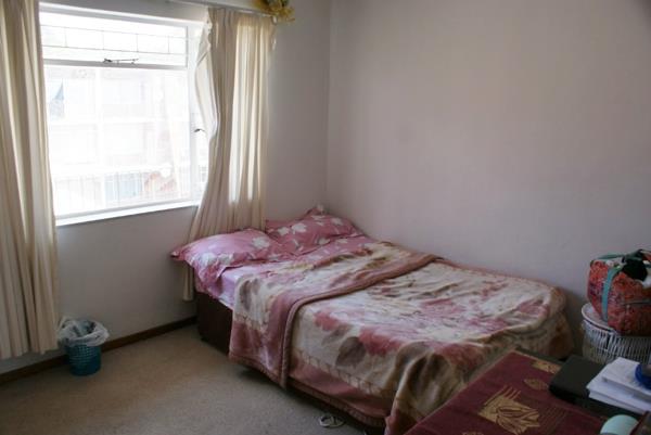 Comfort is key in the two well-proportioned bedrooms, each benefiting from natural light and fitted with tiles. Built-in wardrobes provide convenient storage solutions, while security bars on the windows offer peace of mind. The unit includes a full bathroom, complete with a bathtub and shower combination, safety grab bars, and tiled finishes, ensuring a practical and accessible space.