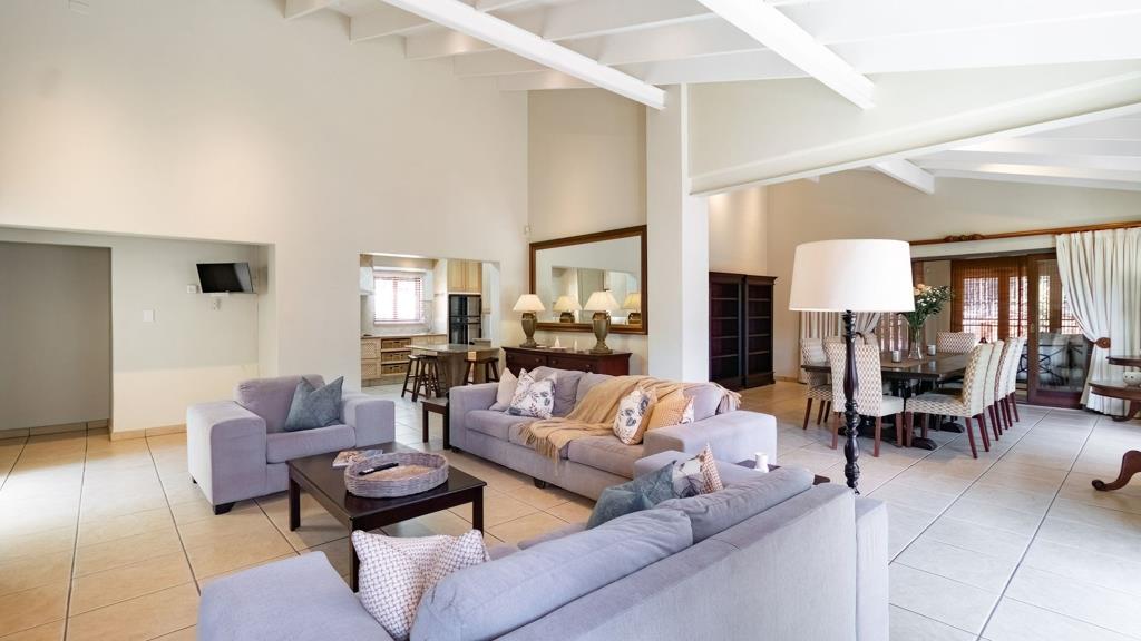 From the front porch the front door opens on to a reception area with skylight bringing light to the private home office. The elegant lounge area with high exposed beams sets the trend to stately and relaxed dining room and the large patio which opens on to the pool and braai area outside.