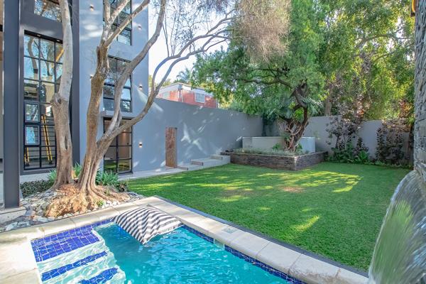 Designed for quintessential indoor-outdoor living, the homes expansive living areas flow effortlessly onto a covered entertainment patio. Frameless glass sliders create a seamless transition to the outdoors, where a gas/wood combination braai awaits. The serene, professionally landscaped garden, complete with a firepit and sparkling pool, provides a tranquil backdrop for both grand-scale entertaining and private relaxation. Soaring double-volume spaces bathe the interior in an abundance of natural light, enhancing the home''s grand yet welcoming ambiance.