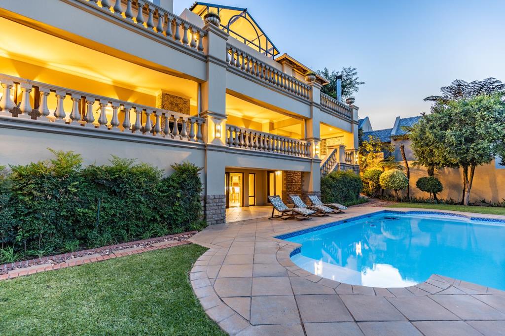 Perched high in the exclusive, gated Silver Oak Place, this 1,100m architectural masterpiece offers an unparalleled lifestyle on a 2,000m elevated stand, boasting panoramic views over Pretoria and the Union Buildings. The estate comprises three distinct buildings: the grand 3-level main house with 5 en-suite bedrooms, expansive living areas, a wrap-around terrace, and an entertainment wing a charming 3-level thatched cottage and a separate 2-level guest andamp utility building featuring additional accommodation, a second laundry, and a gym.