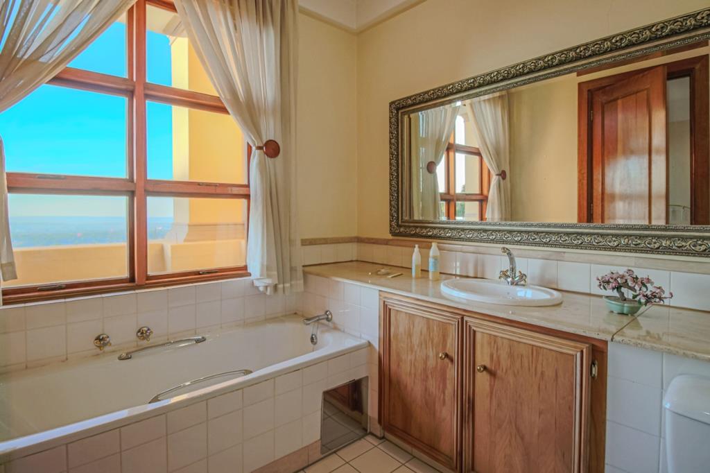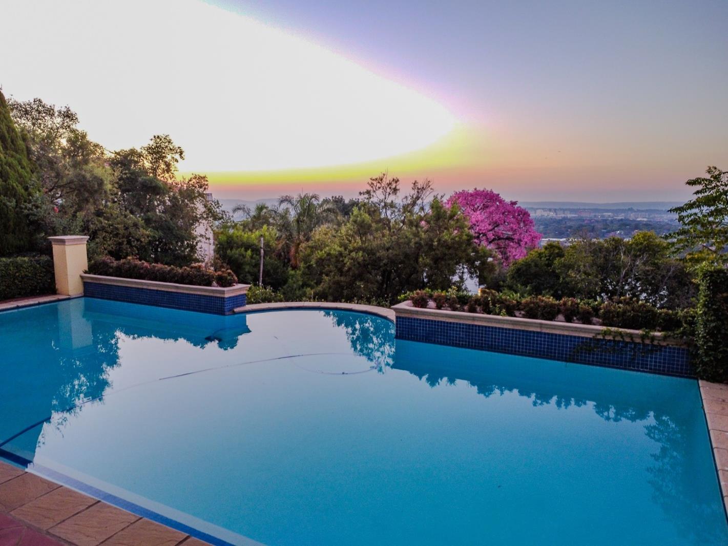 double-height entrance, with views over the entertainment patio and pool area, welcomes you with a warm embrace. The entertainment areas of the home are the true heartbeat with endless views over Pretoria and ample space for the dinner parties of your dreams.