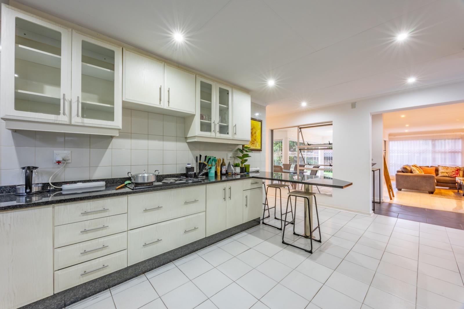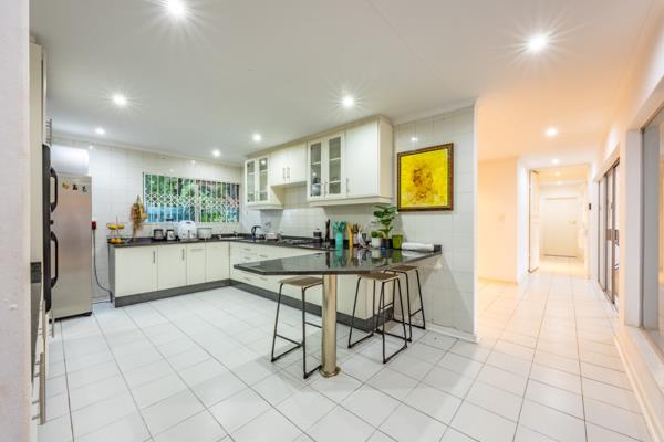 A separate TV lounge and a dedicated study or gym provide additional versatile spaces for work, fitness, or relaxation. The modern, well-appointed kitchen is designed for both functionality and style, with granite countertops, an electric stove, a walk-in pantry, and a separate scullery. The expansive garden is a standout feature, offering plenty of space for children to play and pets to roam. The home also includes staff quarters, a double automated garage with wine cellar. Security is top-notch, with electric fencing, an alarm system, automated gates, and 24-hour neighbourhood patrols, ensuring peace of mind.