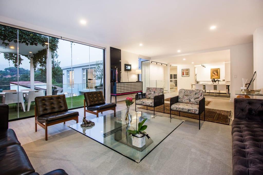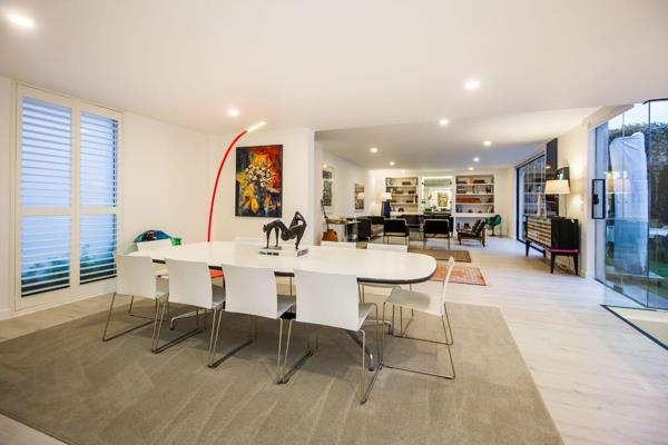 Framed by treed vistas and located on a quiet, pristine street, the homes striking architecture features generous use of glass to capture the surrounding views and invite natural light throughout. The seamless open-plan layout showcases expansive lounge and dining areas that flow effortlessly into a sleek, modern kitchen, fully equipped with integrated appliances and a built-in fridge, a separate Scullery and laundry room.