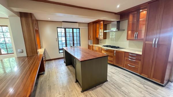 Step inside to discover a home designed for comfort and functionality. The interior boasts two spacious lounges, a dedicated dining room, and a family TV room, ensuring ample space for relaxation and entertainment. A study provides a quiet retreat for work or contemplation. The well-appointed kitchen is a chef''s delight, featuring extensive wooden cabinetry, a central island with a sink, a modern gas hob, and a convenient pantry. Air conditioning ensures comfort throughout, while the open-plan layout enhances the flow of daily living.