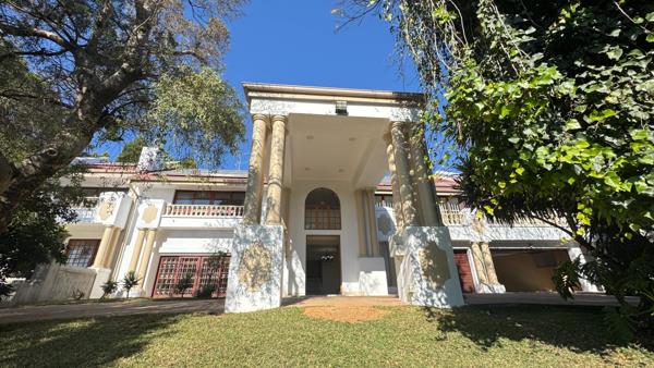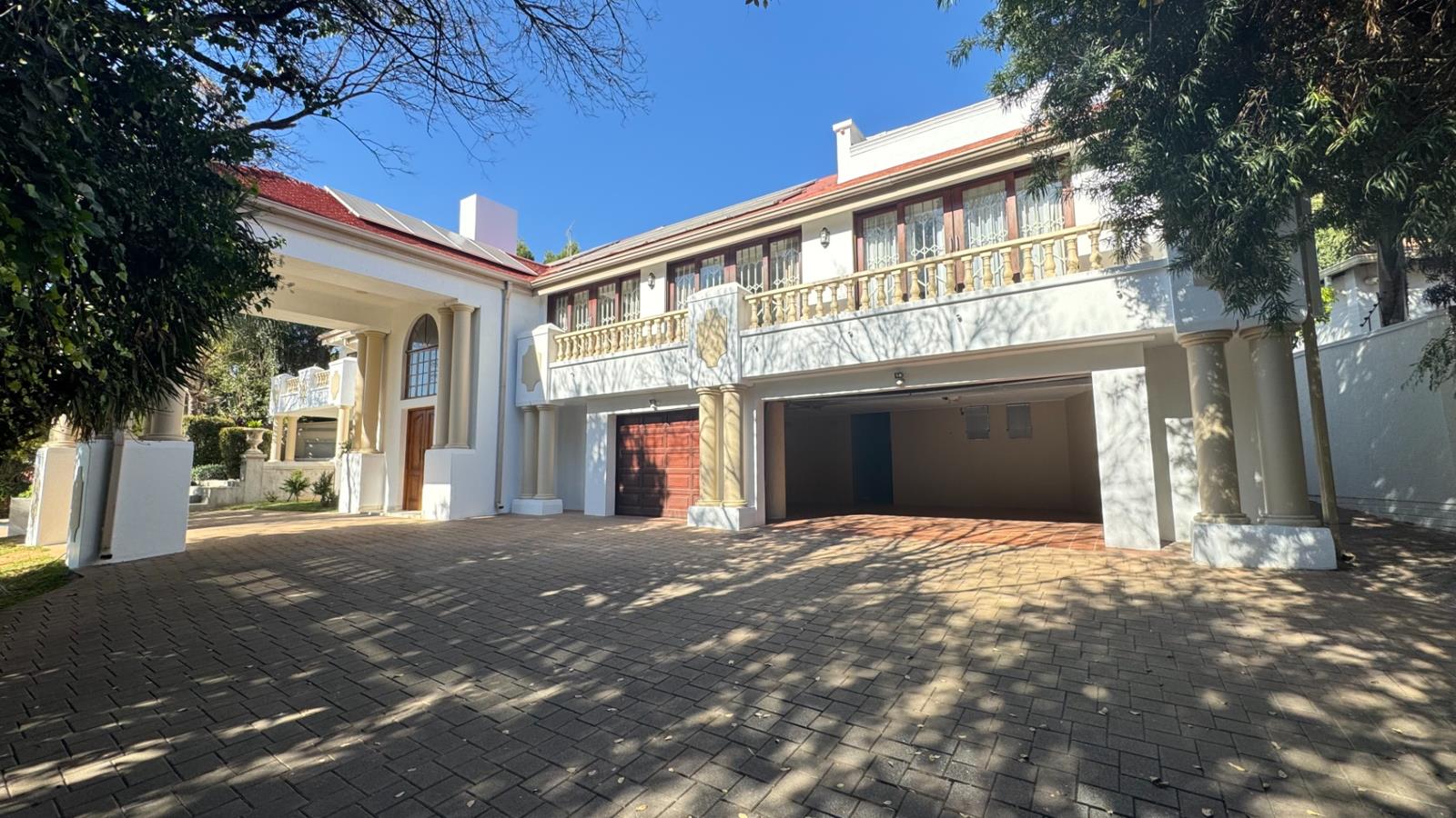 Nestled in the prestigious suburban enclave of Waterkloof, Pretoria, this magnificent residence offers an exceptional lifestyle on a generous 1980 sqm erf. The property immediately impresses with its grand classical architectural style, featuring elegant columns and balustrades, complemented by a large paved driveway providing extensive off-street parking and leading to five garages.