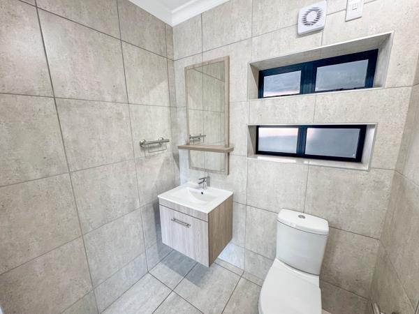 Both bedrooms are bright and north-facing, with a spacious bathroom offering a walk-in shower. The unit includes two service points for appliances, prepaid electricity, and is ready for immediate occupation.