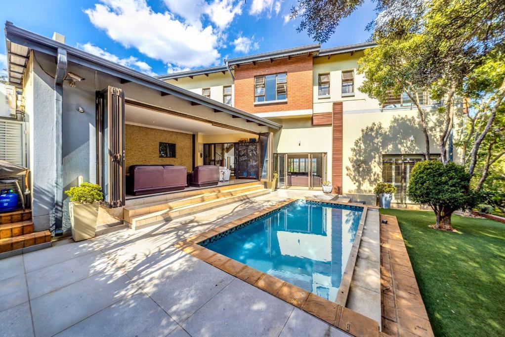 Outdoors, leisure and lifestyle unite. A heated swimming pool with safety cover, traditional boma braai and lush landscaping invite gatherings both intimate and grand. Dual staff accommodations, rainwater harvestin and cutting-edge security, including beams, alarm system and 16-camera CCTV, ensure seamless functionality and peace of mind.