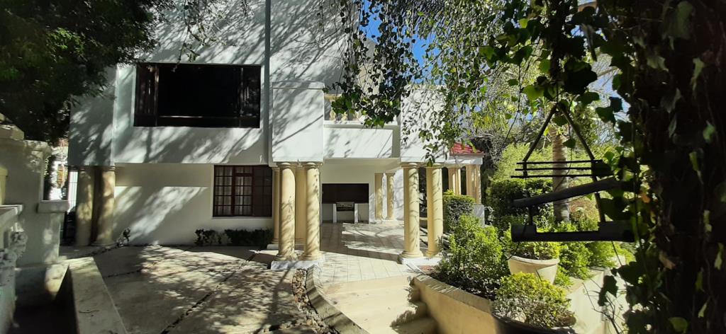 Nestled high up on the hilltop in prestigious Waterkloof with views extending forever, this prime property looks & feels like a Manor House within its own Estate.
