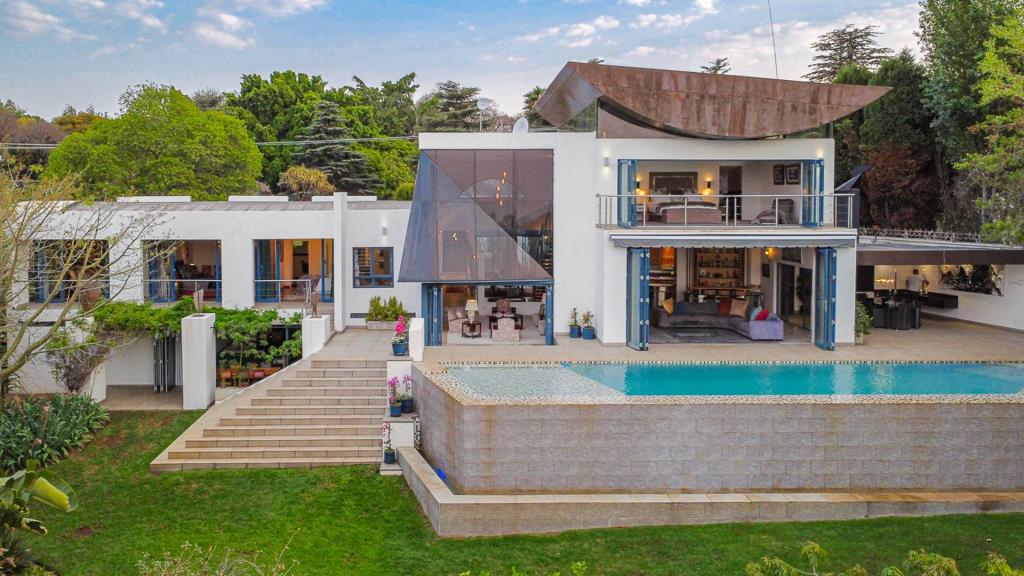 Originally designed and completed in 2000 by acclaimed architect Johan Laubscher as his personal residence, this home was prominently featured in Habitat Magazine (May/June 2000 edition). Its timeless design has aged with grace, remaining effortlessly modern and sophisticated for over two decades. Soaring double-volume ceilings and vast windows flood the interiors with natural light, creating an ambience of space, proportion, and elegance.