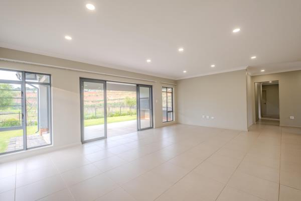 Enjoy breathtaking lake views from the main suite and living rooms, which open onto the garden patio. The evenings come alive with the sounds of various bird species. The well-sized, open-plan living areas seamlessly integrate with the kitchen, perfect for modern living.