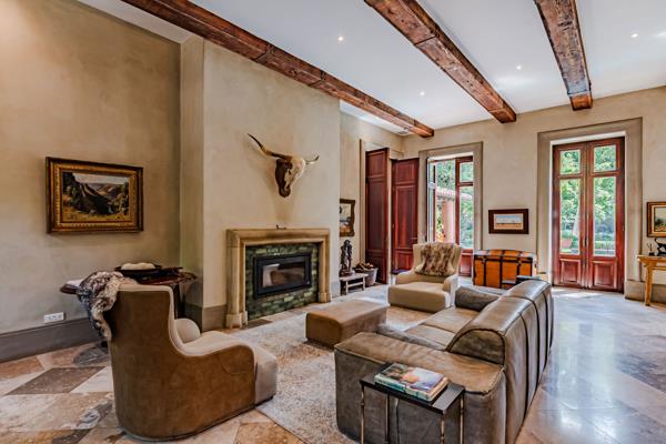 Property highlights include a borehole and water tanks, computerized irrigation, vegetable and herb garden, solar/inverter system with batteries, three fireplaces, sash windows, high ceilings and French doors.