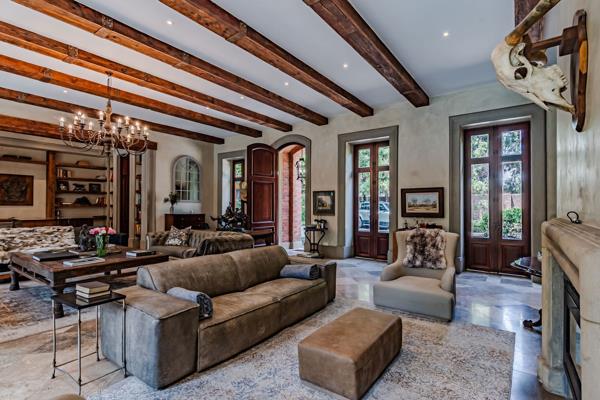 Double-volume living and dining spaces open seamlessly onto an entertainment gazebo patio and built-in braai, heated lap pool and park-like rolling lawns creating the perfect environment for both formal receptions and easy family living.