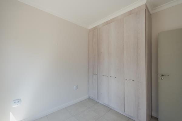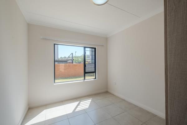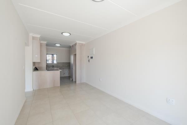 Featuring a bright open-plan living area, spacious main bedroom, with a second bedroom and sunlit patio, this apartment is perfect for independent retirees seeking a practical and peaceful home. The modern kitchen accommodates two undercounter appliances, and the bathroom includes a generous shower. Ample cupboard space, solar-assisted geyser, and prepaid electricity add convenience and efficiency.