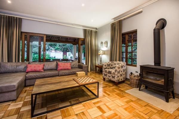 The gorgeous open plan kitchen with its eye-catching gas stove and double oven flows seamlessly to the lovely dining area that provides splendid views of the lush garden.