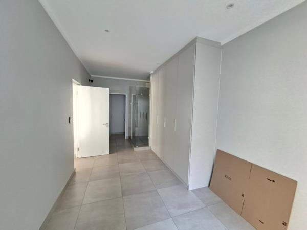 The two bedrooms are well-proportioned and feature tiled flooring, large windows, and built-in cupboards that offer excellent storage solutions. The main bedroom includes an en-suite bathroom.The main bathroom includes a full-sized bathtub, a large vanity with an integrated basin, and a separate walk-in shower with a glass enclosure. The second bathroom also has a walk-in shower with a glass enclosure and a vanity with a basin.