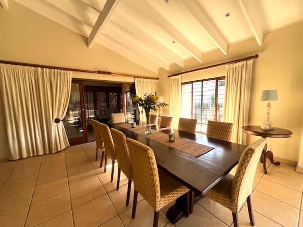 Designed with entertainment in mind, the expansive open-plan living areas, along with an enclosed patio, seamlessly flow into the garden and the inviting sparkling pool area. The modern kitchen includes a separate scullery for added convenience.