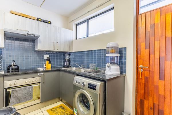 Enhancing the lifestyle appeal, the property includes a private balcony, perfect for enjoying the outdoors. This outdoor space is complemented by a built-in braai, ideal for social gatherings and alfresco dining. Practical amenities include a dedicated parking bay, ensuring secure vehicle accommodation. Security is a priority, with features such as 24-hour security, an access gate, and burglar bars providing peace of mind. Sliding doors connect the interior living areas to the balcony, blending indoor and outdoor spaces effortlessly.