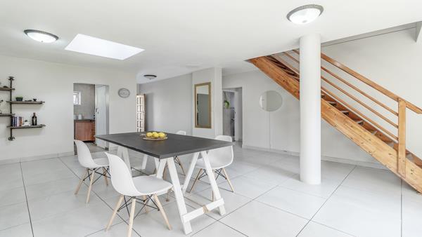 The home features a neat, compact kitchen, as well as two generous open-plan living areas, one fitted with a built-in braai ideal for entertaining. The garden is a comfortable size with an additional outside braai, perfect for outdoor gatherings. A double garage provides secure parking.