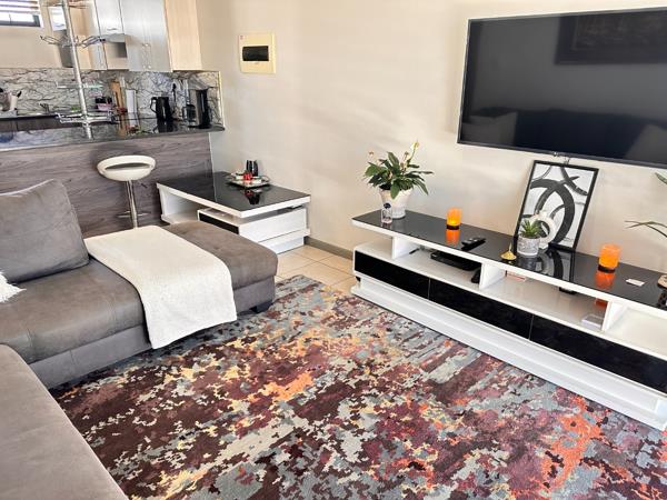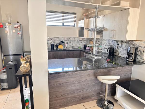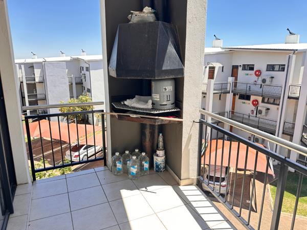 Both bedrooms offer comfortable accommodation, with one featuring an en-suite bathroom for added privacy. The apartment extends its living space outdoors with a private balcony, complete with a built-in braai, ideal for enjoying South African outdoor cooking. Fibre connectivity is available, catering to modern lifestyle needs.