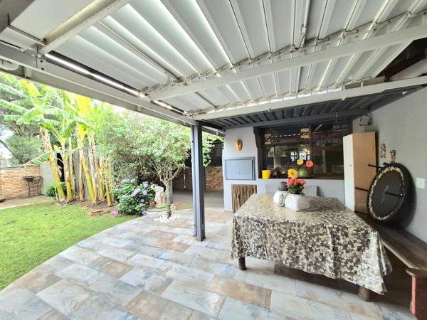 On entering the house, you will find a smaller formal lounge linked to a spacious open plan living area family room and dining room, flowing out to the patio with built-in braai overlooking the private back garden on the one side, as well as an immaculate front garden with deck and seating area on the other.
