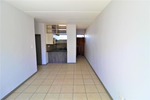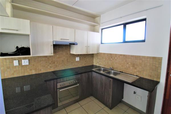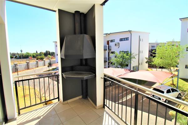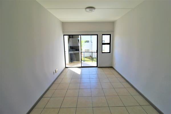 Step into a neat and tidy unit featuring a modern kitchen with ample cupboard space, a tabletop electric stove, and room for an appliance. The open-plan layout flows seamlessly into the spacious living area, which leads out to a private balcony equipped with a built-in braaiideal for entertaining.