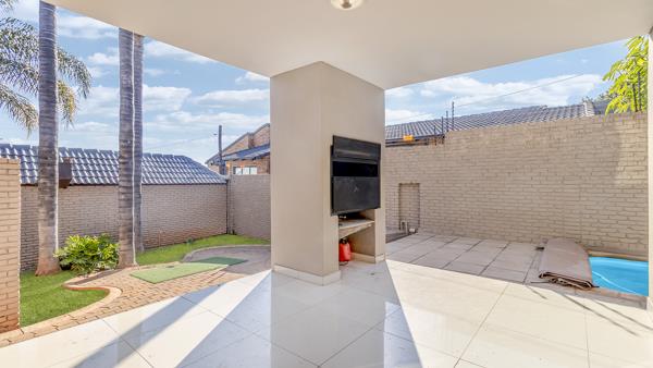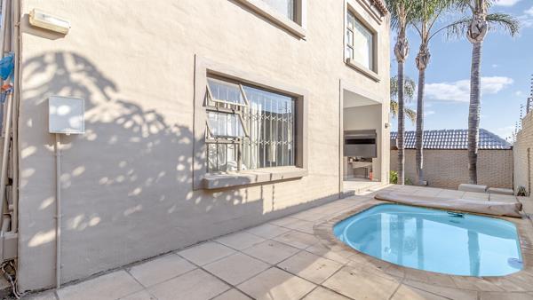 The small but inviting garden features a splash pool and an undercover patio with a built-in braai ideal for relaxed weekends and entertaining guests. A double garage ensures secure parking, while the panhandle location provides ample visitor parking and additional privacy.