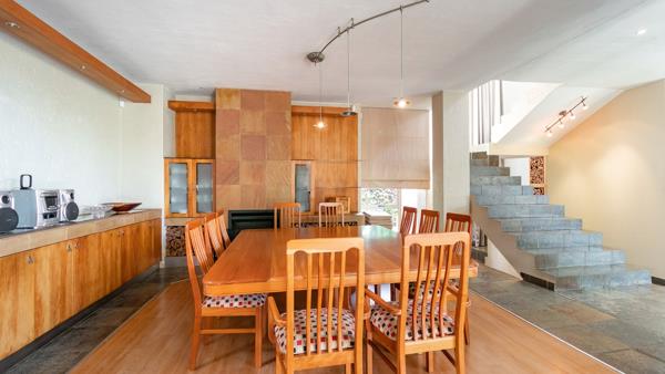 Slide open the stacking and sliding doors to reveal an enormous covered patio, complete with a built-in braai, creating a seamless indoor-outdoor flow perfect for entertaining. All of this overlooks the pool and manicured garden a true oasis of tranquillity and space.